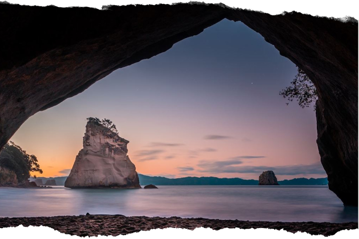 Photography tip: Arrive by boat or kayak in the early morning for soft, even light and an empty beach. Shoot through the archway to frame the ocean and Te Hoho Rock beyond. In summer, the pohutukawa trees bloom bright red and add a uniquely New Zealand splash of colour to your composition.