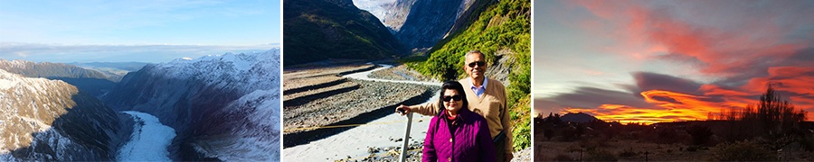 “The tour of the South Island was indeed a fantastic experience for both my wife and me. David Mitchell (Dave) was a competent driver, well-informed tour guide and, above all, became a good friend in the five days he took us round from Christchurch to Franz Josef, Queenstown, Te Anau and Milford Sound and the firefly display. We are elderly, 75 and eighty. You had tailored the tour to suit our physical condition. Dave fine-tuned it and was sharp eyed to our needs. He was faultlessly punctual at all times. Apart from the parks, mountains and the glaciers, Dave introduced us to a new experience: at pre-determined spots he let me collect mountain spring water for our consumption on the drive – “cool, refreshing and 100% pure drinkable water.” We are glad we opted for the customised itinerary and the Road Trip Team had put together a near perfect plan. On a scale of 1 to 10, I will give it a ten!”