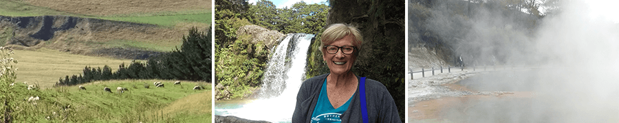 “I had a wonderful experience in New Zealand, thanks to the great planning and to Tom’s assistance. I really enjoyed having my own personal guide/driver, and everyone I tell is jealous too. Tom did an excellent job! He is certainly knowledgeable about the country, nature and history; congenial and has a sense of humor. I felt as if I were traveling with a friend, even though I’m old enough to be his grandmother. And since I pretended to be “the driver”, I went to the wrong side of the car only a couple times. Tom was organized and I think you put together a great adventure for me. There was certainly a lot of variety and the days were planned flexibly and well. It’s difficult to identify specific highlights, everything was amazing. I would designate New Zealand – green. Coming from the desert, all the green was refreshing, besides, I believe New Zealand is considerably ‘green’ environmentally too. Of course, I enjoyed all the winery visits, and there were a lot. The geothermal pools, and geysers were impressive. I enjoyed the hikes and staying active, seeing waterfalls was great. The mountain landscape seemed ‘otherworldly’ at times, so that was impressive, beautiful. I’m happy we were able to drive through the mountains. And the sheep, of course. I had a great time getting to know the farm stay owners, that was a very pleasant evening. I hope this gives you an idea how much fun I had on my private tour of New Zealand. Thank you and each member of the team at The Road Trip. I’ve told several people along the way about you, people interested in traveling to New Zealand.”
