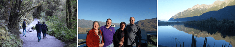 “We had an amazing trip! Thank you so much for a wonderful experience. We were so last minute in booking and yet you booked everything that we requested. Your office was so quick to respond to our e-mail and questions. You were also so accommodating in booking those activities in the North Island for us as well as add some driving routes. Our accommodations were outstanding. We were blown away with the view our first night in Queenstown and each night after that. I would have to say the best part of the trip was the driving. Each day brought more amazing views of an ever changing landscape. I wish the photos did the scenery justice, but it can’t. The weather didn’t cooperate for our Doubtful Sound trip but it was still fun. It also rained for the kayak trip, but Milford Sound with all the waterfalls because of the rain certainly made up for it and I won’t have wanted to miss that. We also got to see penguins and seals while kayaking. The day that we traveled from Wanaka to Fox Glacier was probably my favorite drive. The trip was supposed to be a 3 hour drive, but it took us 10! We made so many stops that you suggested and won’t have wanted to miss a single one. The change in topography that day was stunning. To go from mountains, to the ocean with rain forest and then glacier was breathtaking. Although it rained the day we drove to Christchurch it was beautiful. This only makes me want to come back again. Each trip company from Glowworms, kayaking, Doubtful Sound were amazingly professional, helpful and informative. We stuck to the road trip bible. We eat where you suggested and it never disappointed. We tried to do all the hikes that you suggested – loved the Kepler track and the swing bridge. Each day was filled from morning until night with amazing adventures. Ending in Christchurch at the beautiful hotel and dinner was such a wonderful way to cap off an outstanding adventure. Thank you!”